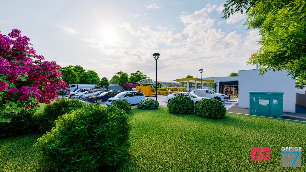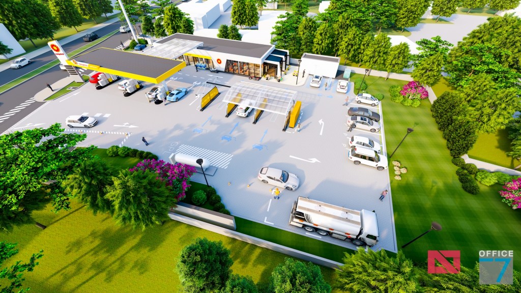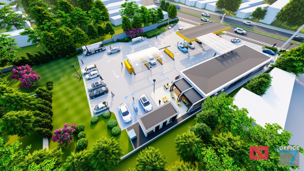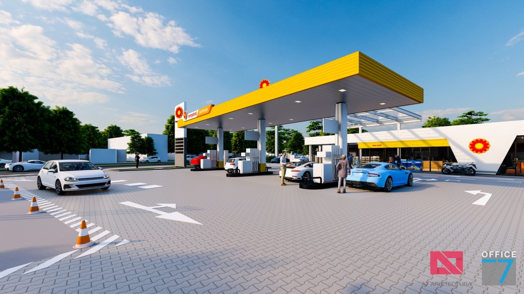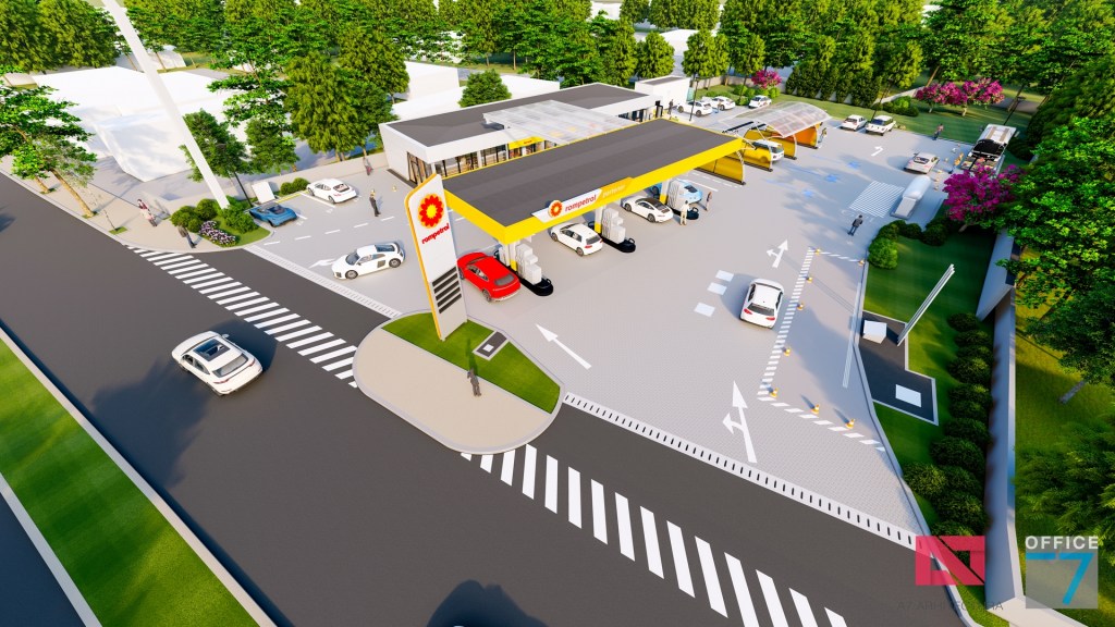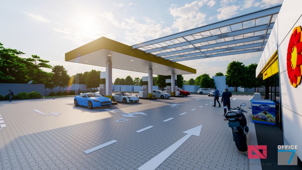 Statie distributie carburanti Rompetrol Craiova pe bulevardul Romanescu si spalatorie auto manuala, concept si proiectare completa.