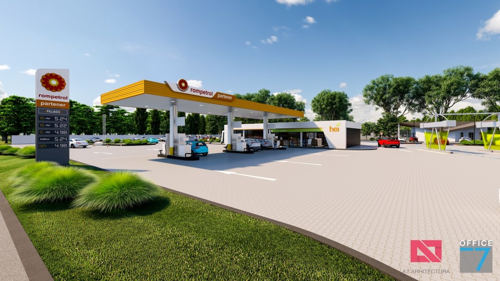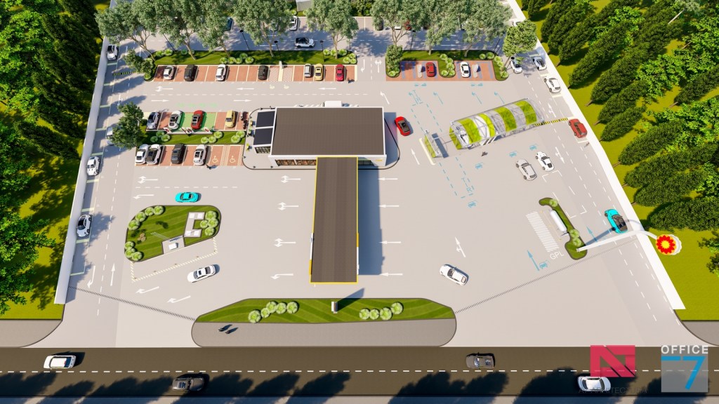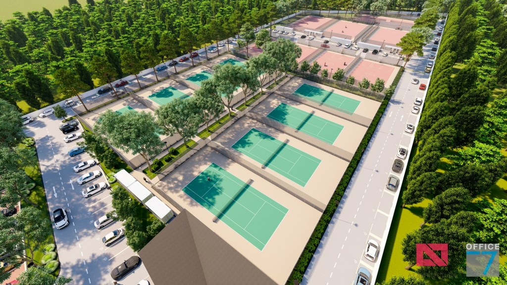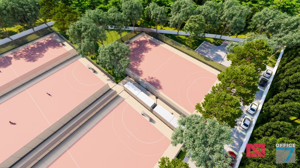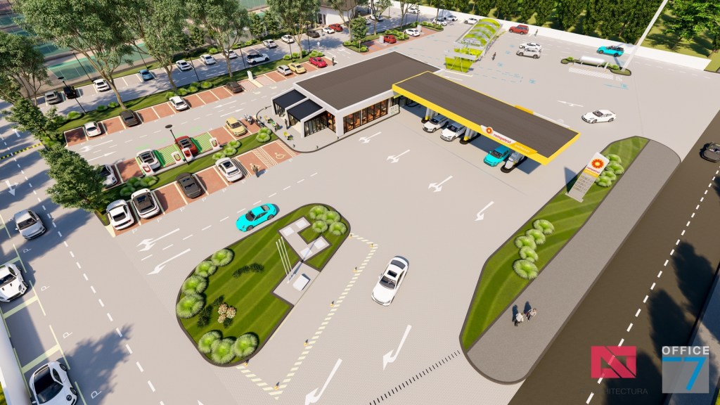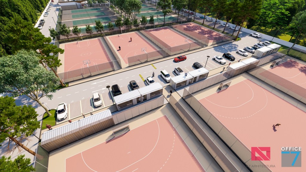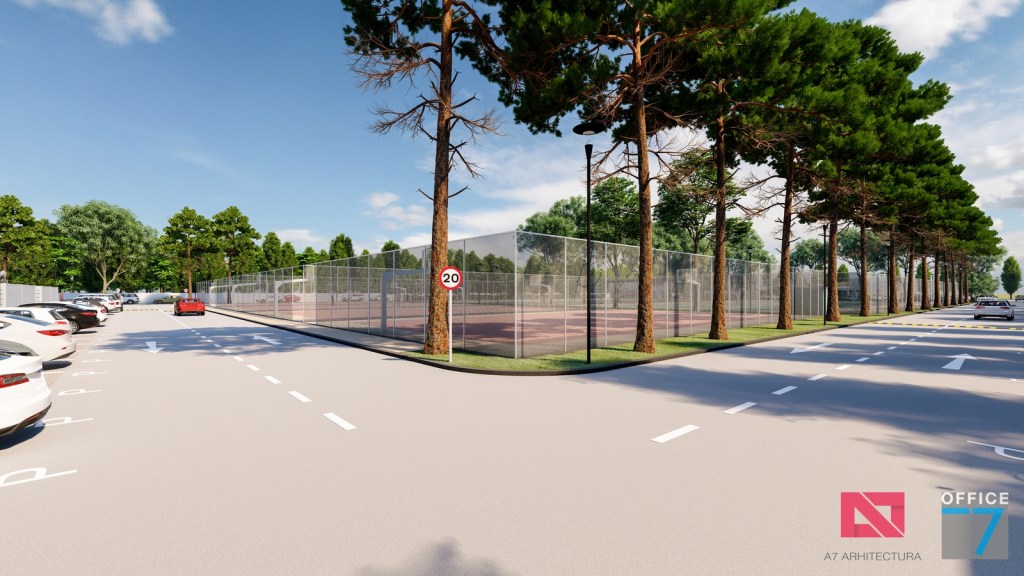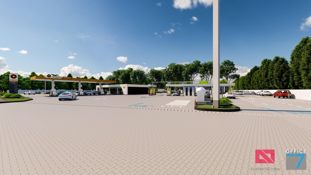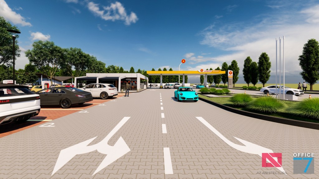 Complex sportiv in Podari, langa Craiova. Propunere amenajare teren existent: complex sportiv (tenis, fotbal, basket), restaurant, spalatorie auto si statie distributie carburanti Rompetrol partener.