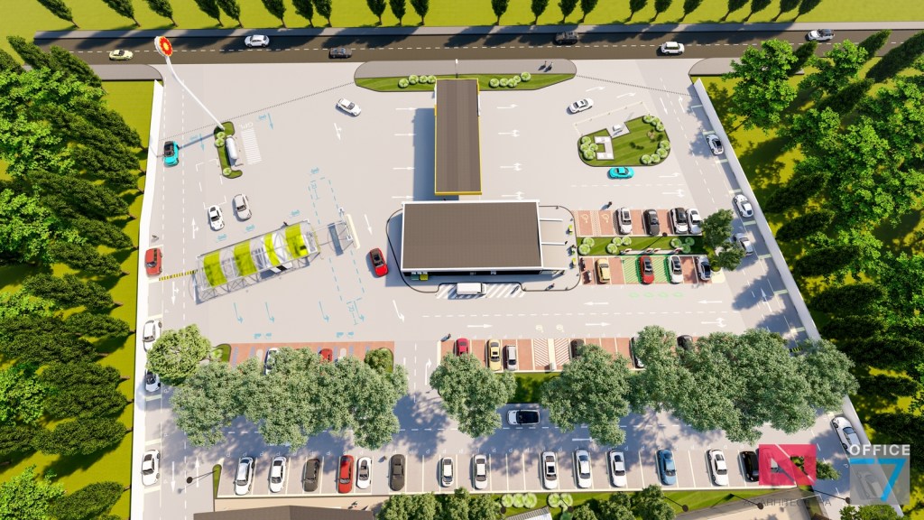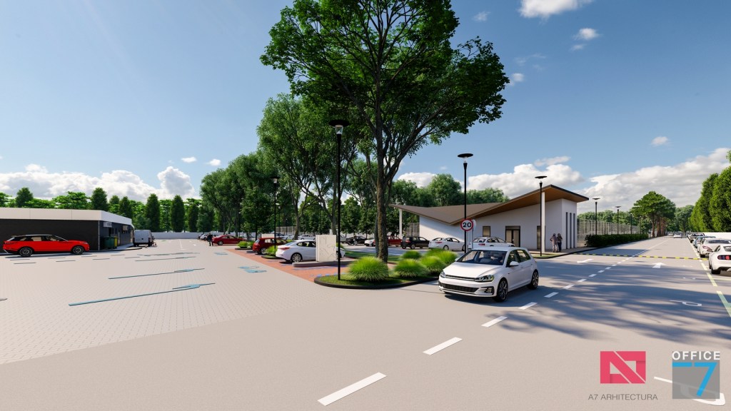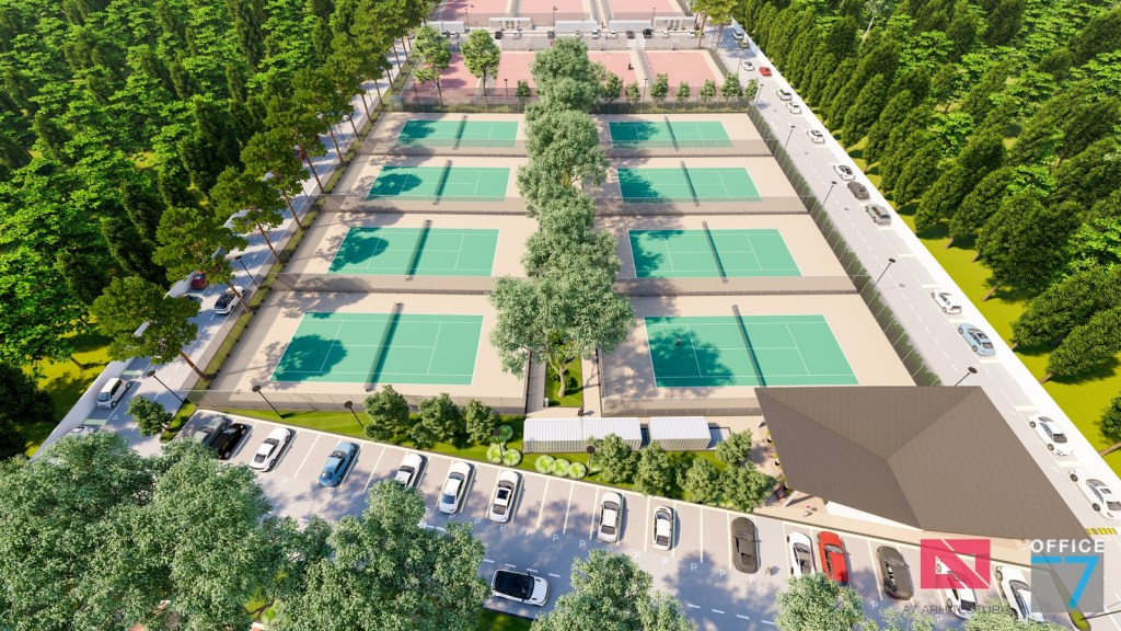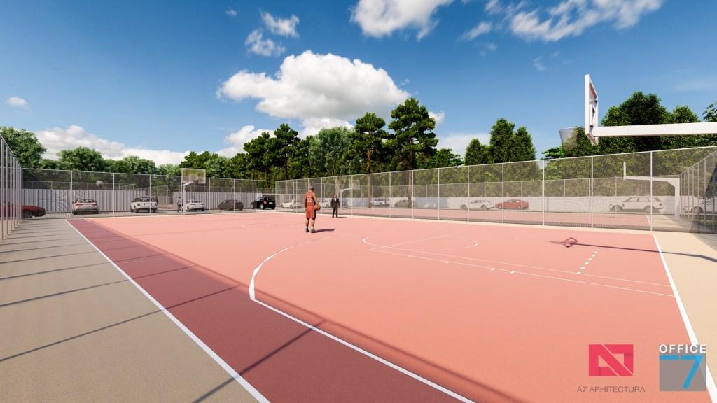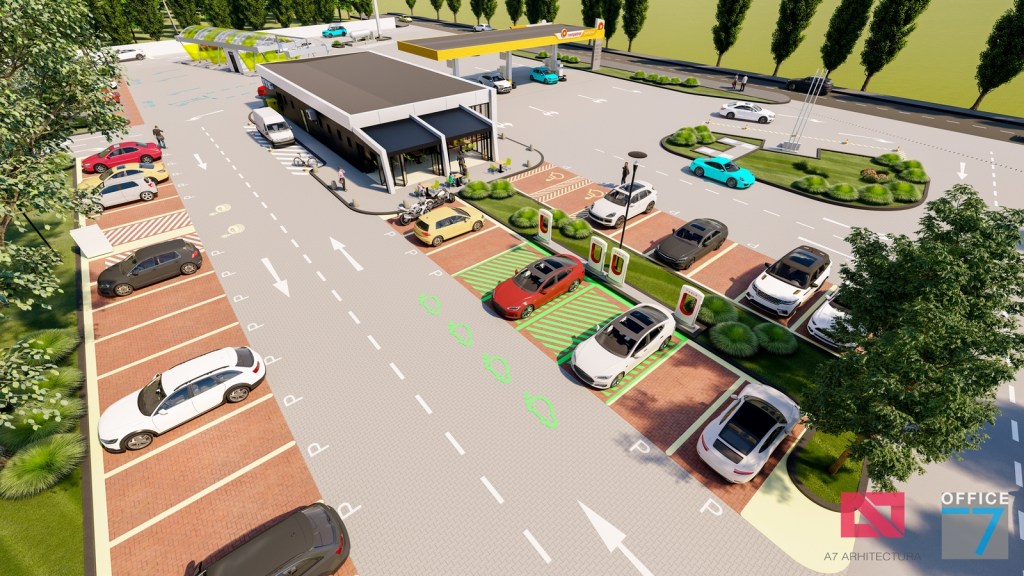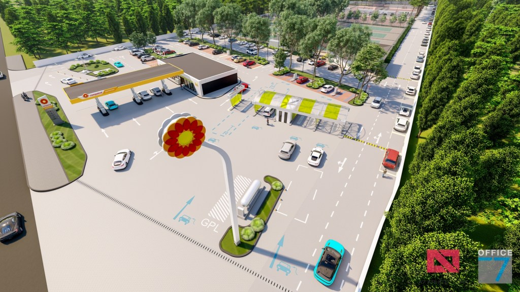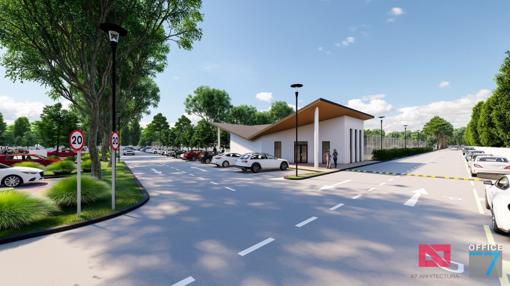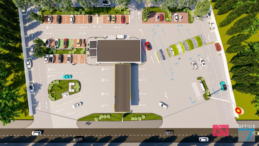 Complex sportiv in Podari, langa Craiova. Propunere amenajare teren existent: complex sportiv (tenis, fotbal, basket), restaurant, spalatorie auto si statie distributie carburanti Rompetrol partener.