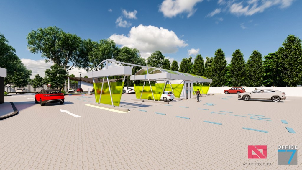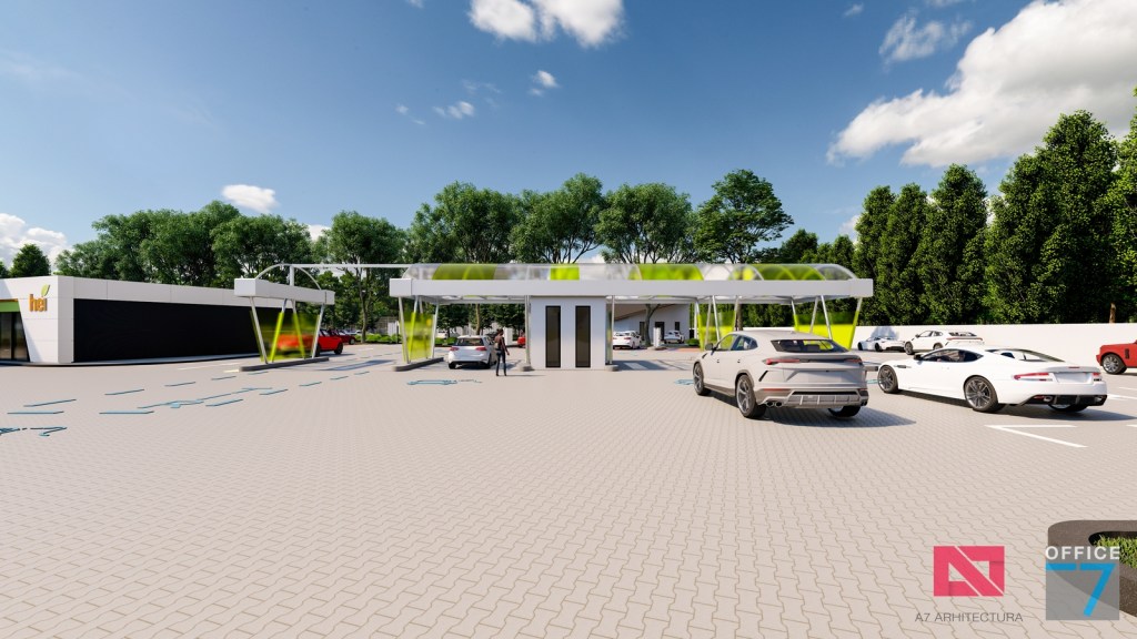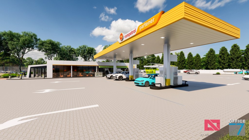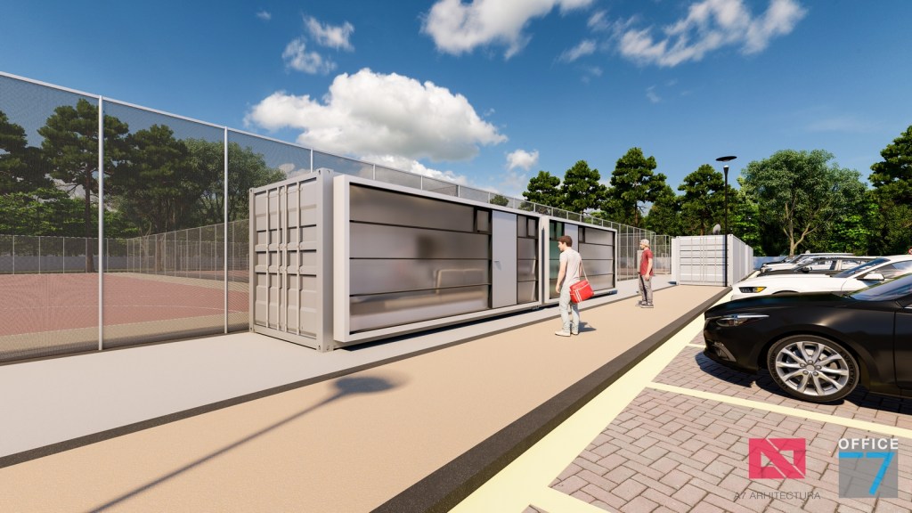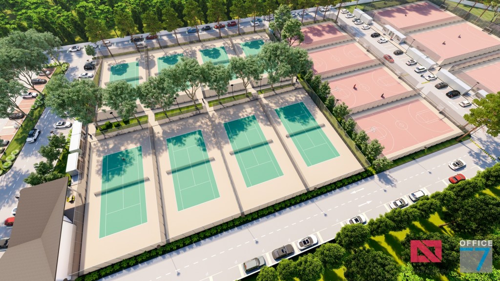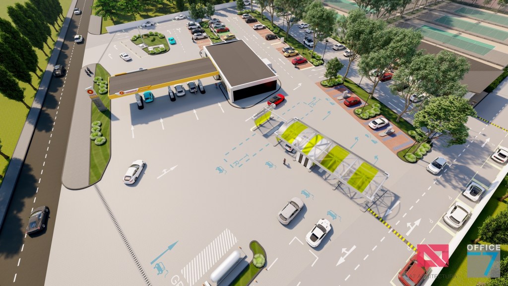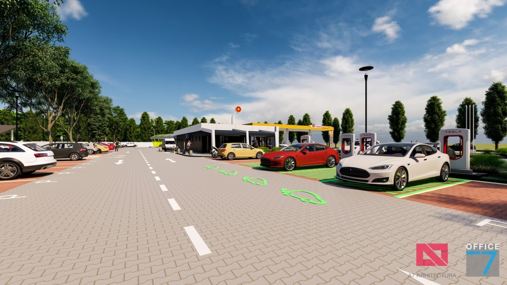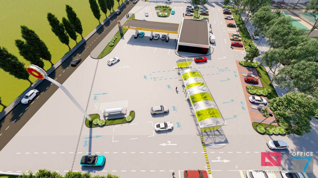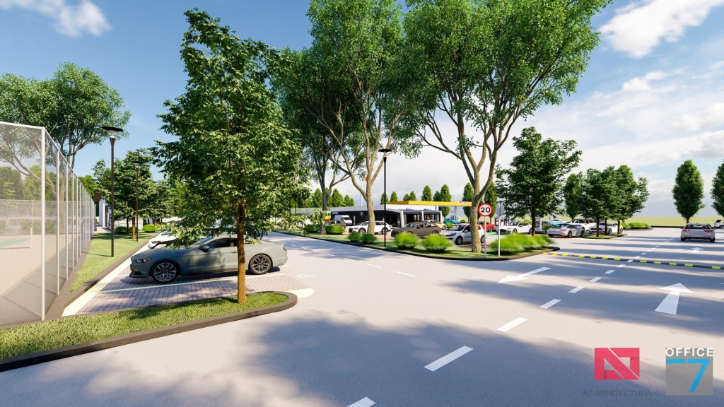Complex sportiv in Podari, langa Craiova. Propunere amenajare teren existent: complex sportiv (tenis, fotbal, basket), restaurant, spalatorie auto si statie distributie carburanti Rompetrol partener.