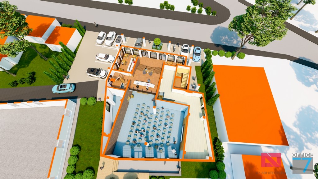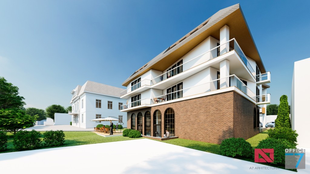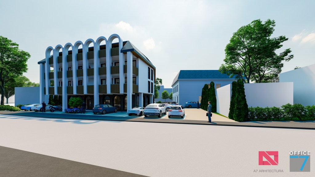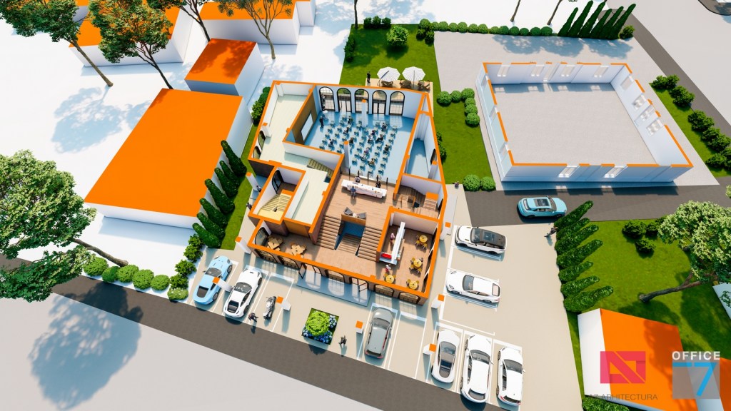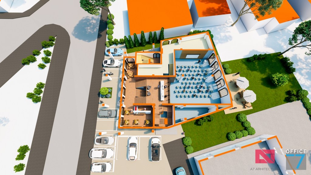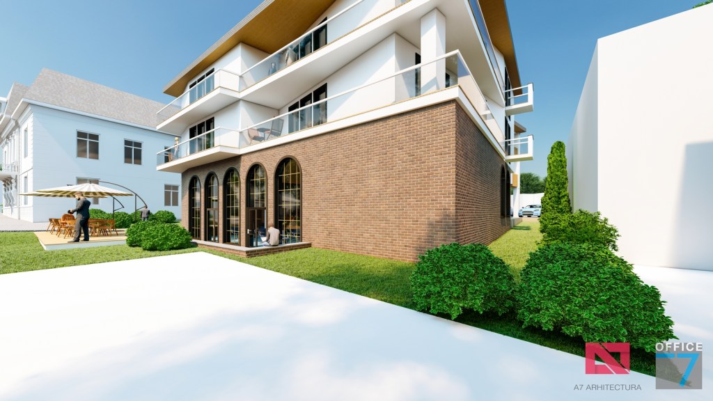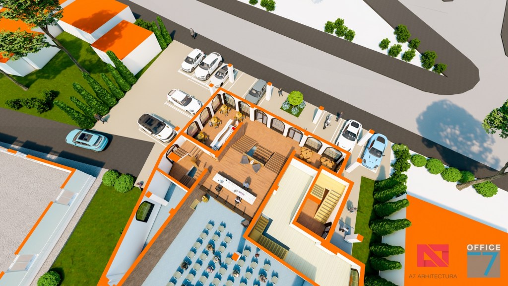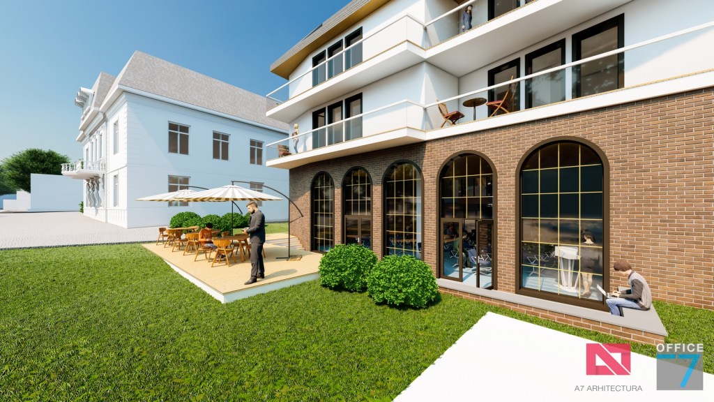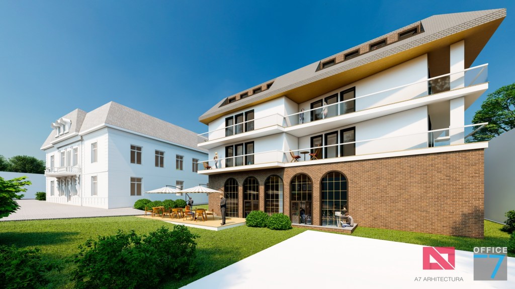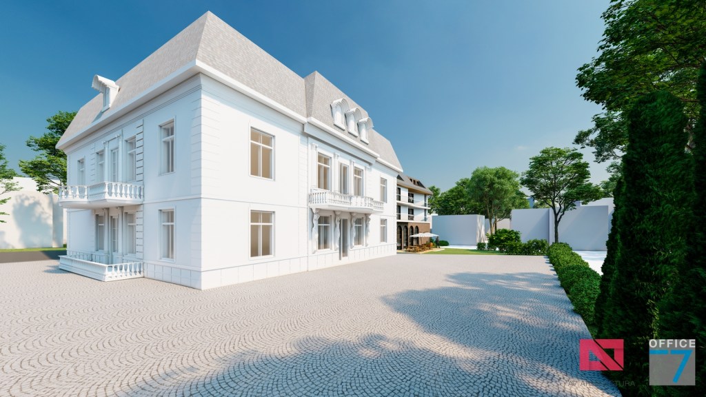 Concept Hotel Retro, Caracal. Propunere arhitectura pentru hotel Retro cu spatii de cazare, restaurant si sala conferinte. Propunere de design interior si exterior in zona protejata.