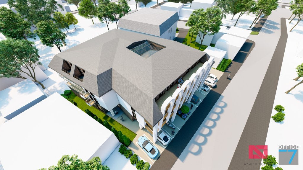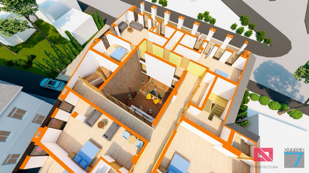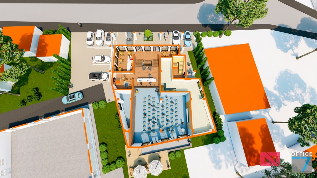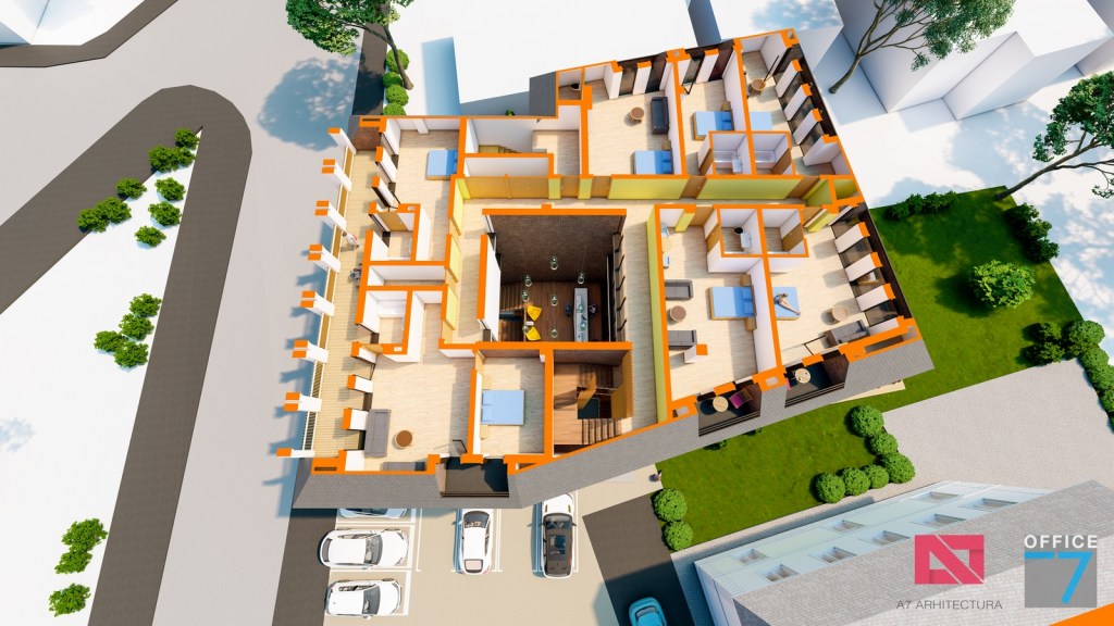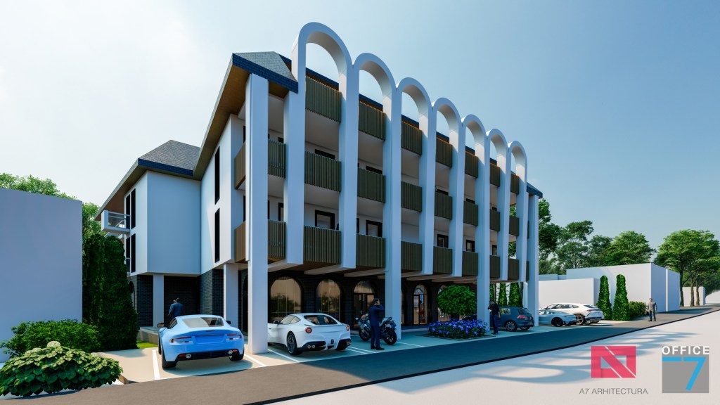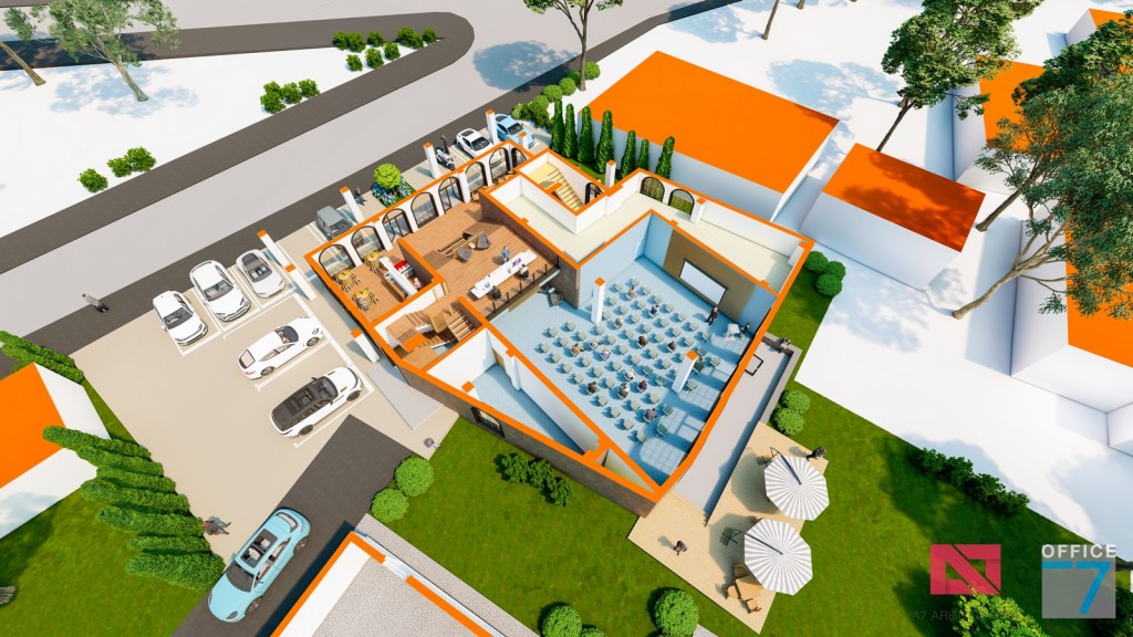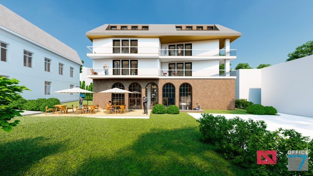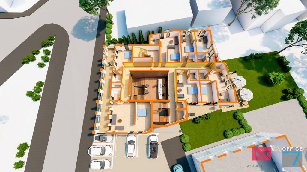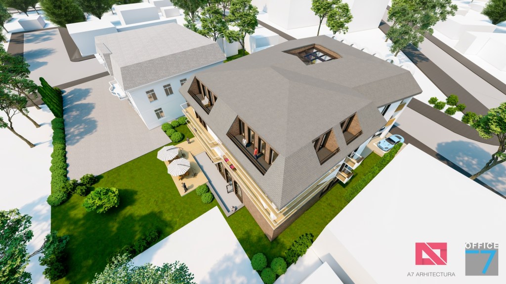 Concept Hotel Retro, Caracal. Propunere arhitectura pentru hotel Retro cu spatii de cazare, restaurant si sala conferinte. Propunere de design interior si exterior in zona protejata.