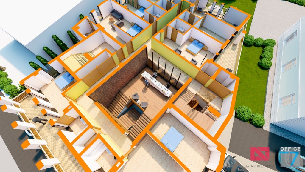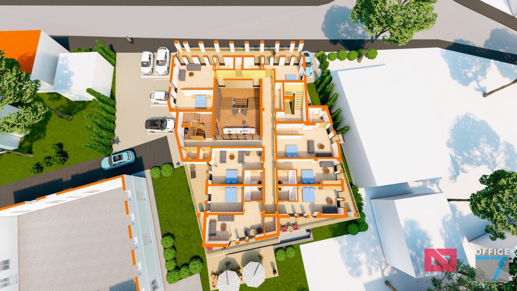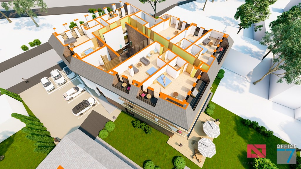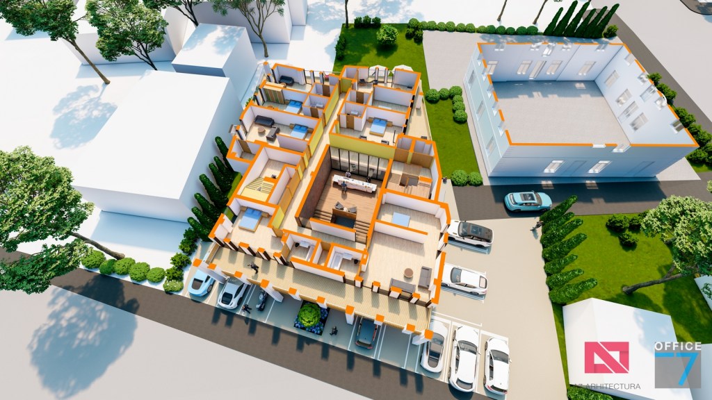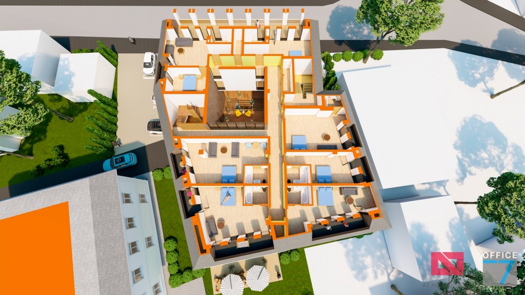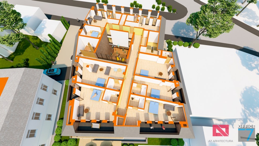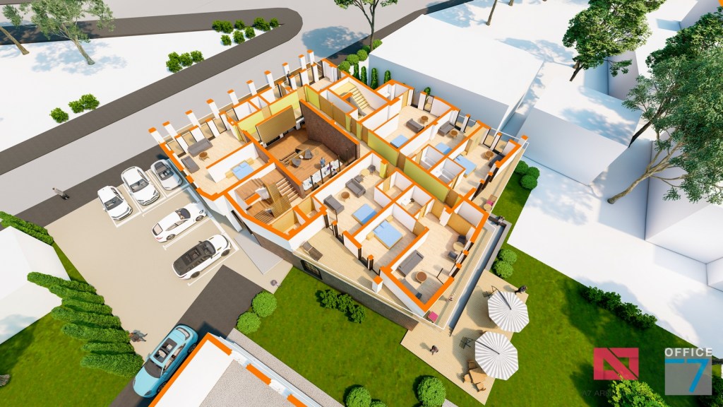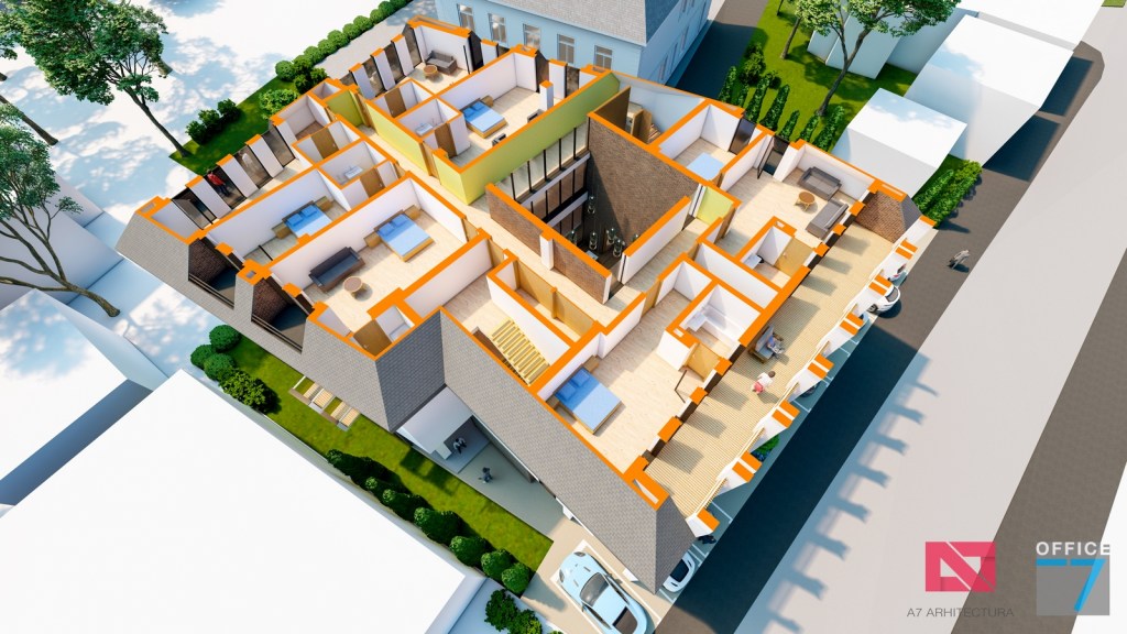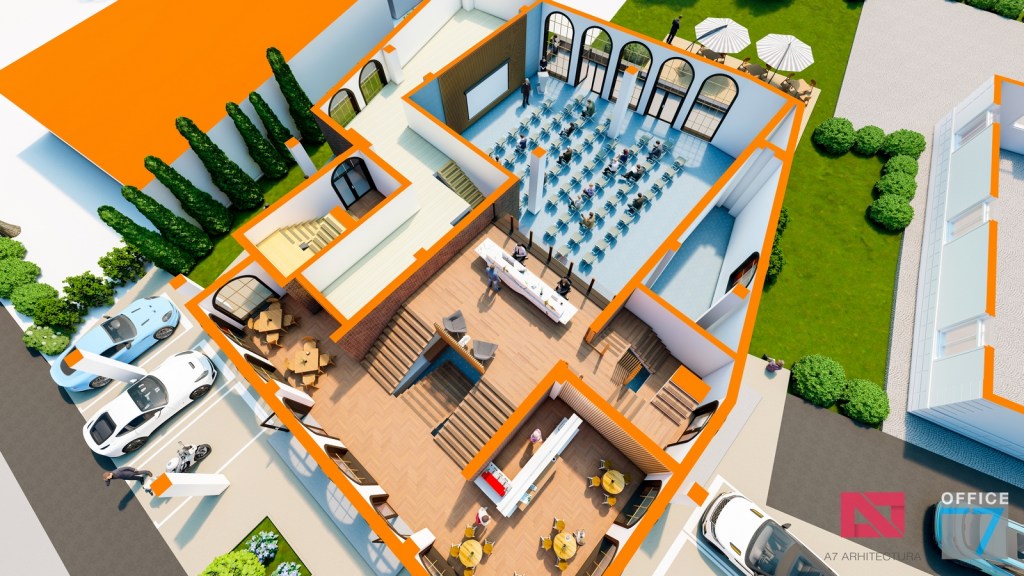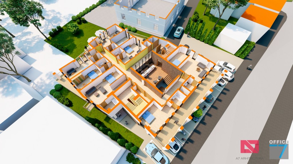 Concept Hotel Retro, Caracal. Propunere arhitectura pentru hotel Retro cu spatii de cazare, restaurant si sala conferinte. Propunere de design interior si exterior in zona protejata.